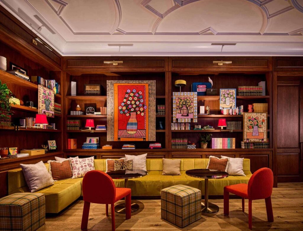 The Funny Library Coffee Shop at Virgin Hotels Las Vegas offers a unique twist on traditional coffee shops by blending a communal workspace with a lively atmosphere where laughter is encouraged.
